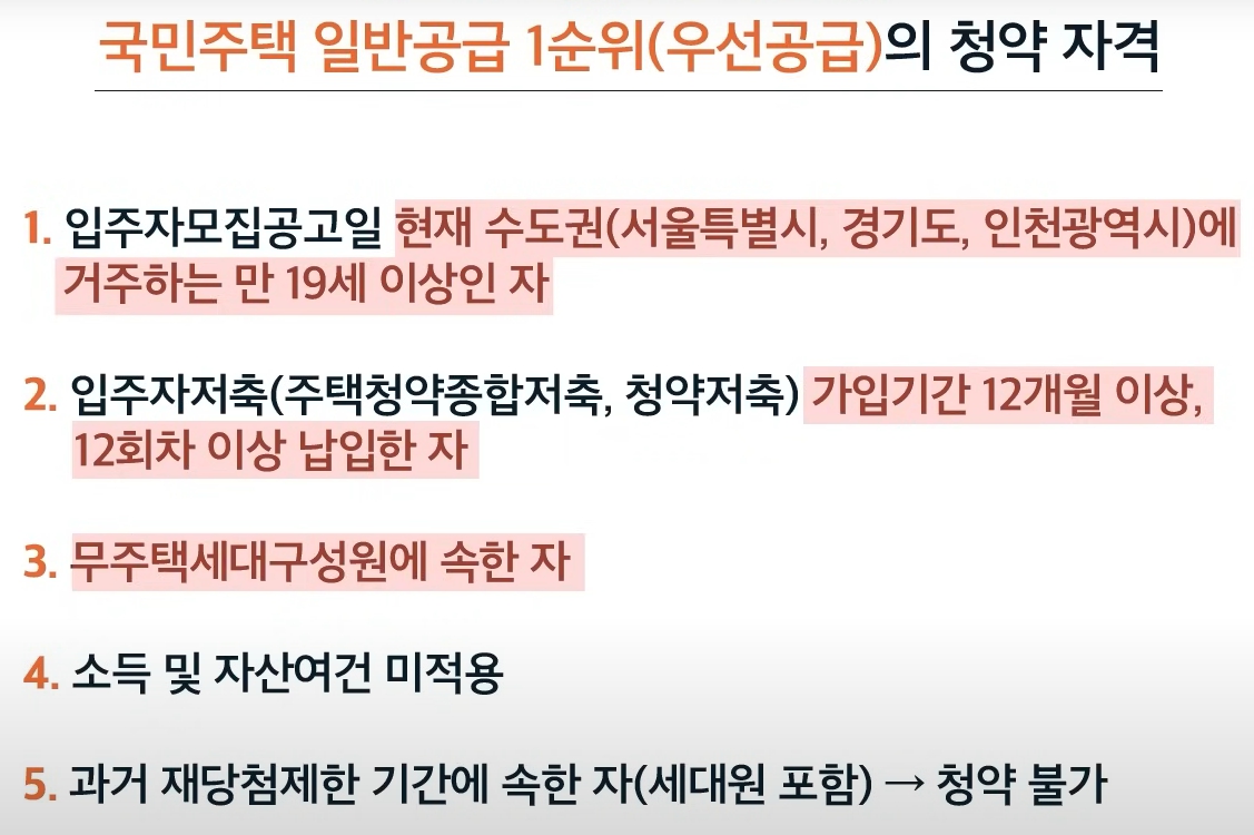 - 입주자저축 요건 : 가입기간 12개월 / 12회차 이상 납입한자