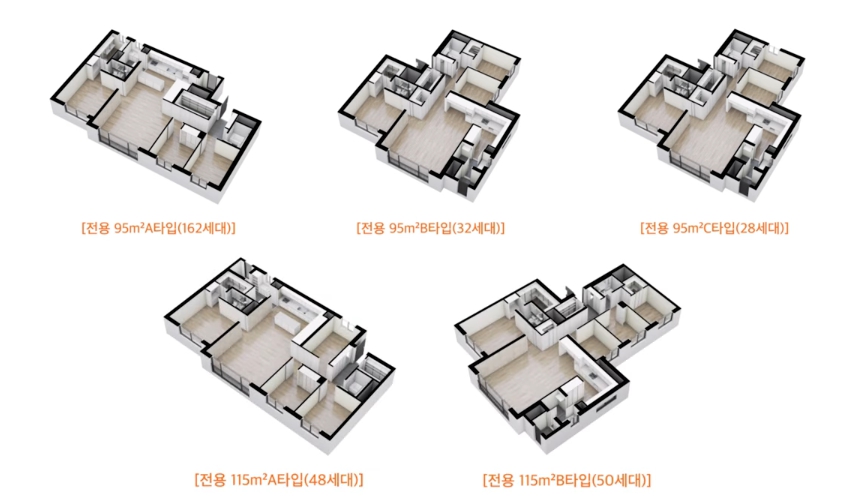 - 타입 : 95A 162세대, 95B 32세대 , 95C 28세대 , 115A 48세대, 115B 50세대