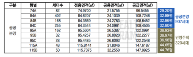 ㅇ 공공분양세대는 84㎡이하 타입으로 74~84 총 4개 타입만 신청이 가능합니다.