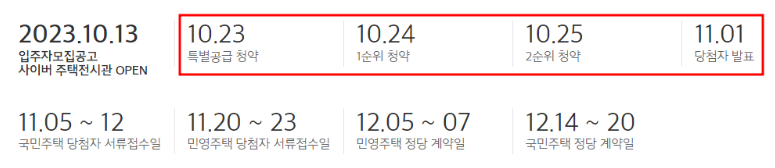 ㅇ 당첨자 발표일 : 2023년 11월 1일(수) 청약홈 발표