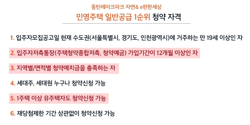 2. 동탄 레이크파크 이편한세상 민영주택 1순위 청약 자격