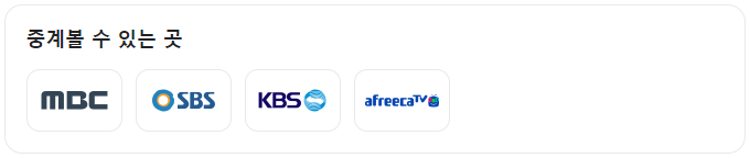 ㅇ 중계 채널 : KBS, MBC, SBS, 네이버 스포츠, 아프리카 TV