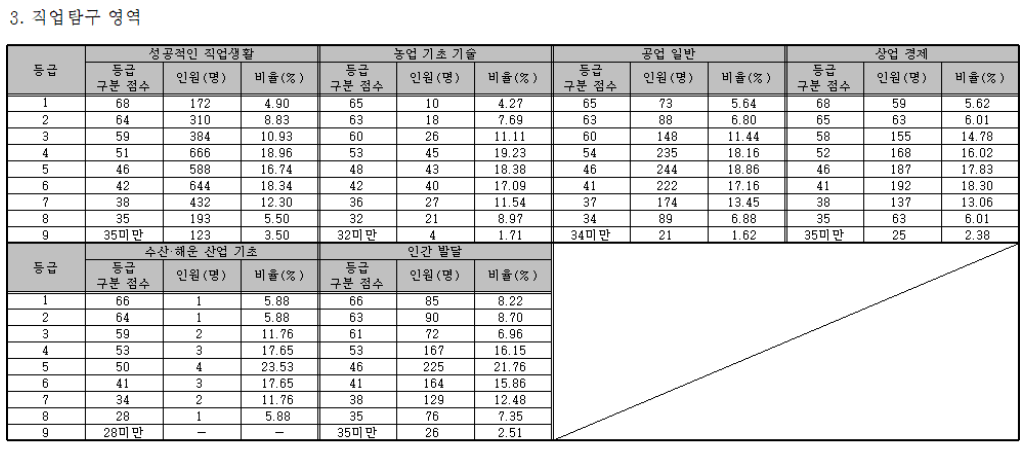 *** 영어, 한국사, 제2외국어 / 한문 영역은 표준점수를 산출하지 않음에 따라서 제외되었습니다.