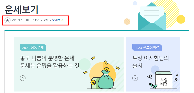 '토정비결, 사주, 궁합, 연애운, 오늘의 운세, 띠별 운세, 신년운세, 타로 등 운세 서비스 무료 제공